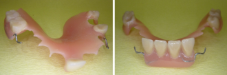 Bei der Modellgussprothese, häufig auch Klammerprothese genannt, erfolgt die Verankerung der Teilprothese mittels Klammern.