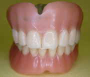 Die meisten Totalprothesen bestehen aus einem speziellen, in der Medizin häufig verwendeten, rosafarbenen Kunststoff, der meist mit Kunststoffzähnen versehen